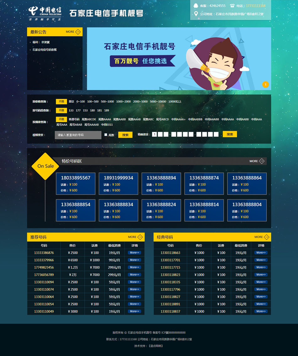 客戶名稱:石家莊電信手機靚號