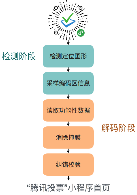 小程序碼識別過程跟小程序碼的生成過程是反過來的,大家可以通過簡單的流程圖來感受一下。