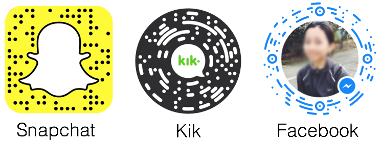 當(dāng)時就在想,這么不像二維碼的碼真的能掃出來?結(jié)果一試還真可以!后面通過查找資料才發(fā)現(xiàn),原來這種異形二維碼并不是微信的首創(chuàng),F(xiàn)acebook、Snap 等公司都已經(jīng)推出過類似的異形碼: